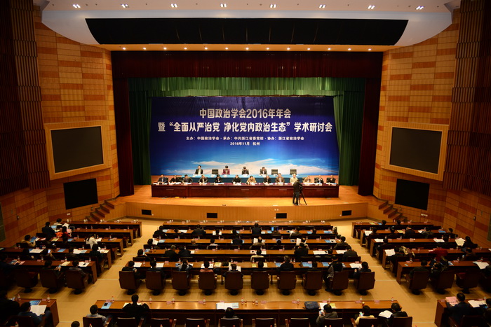 11月5日至6日,由中国政治学会主办、中共浙江省省委党校承办、浙江省政治学会协办的“中国政治学会2016年年会暨‘全面从严治党净化党内政治生态’学术研讨会”在浙江省省委党校召开。浙江省人大常委会原副主任、省党建研究会会长、省文史馆馆长王永昌出席会议,中国政治学会会长李慎明作书面致辞,浙江省省委宣传部常务副部长胡坚、常务副董事长陆发桃、中国政治学会副会长王一程、浙江省政治学会会长余逊达、浙江省省委党史研究室副主任王祖强分别致辞。