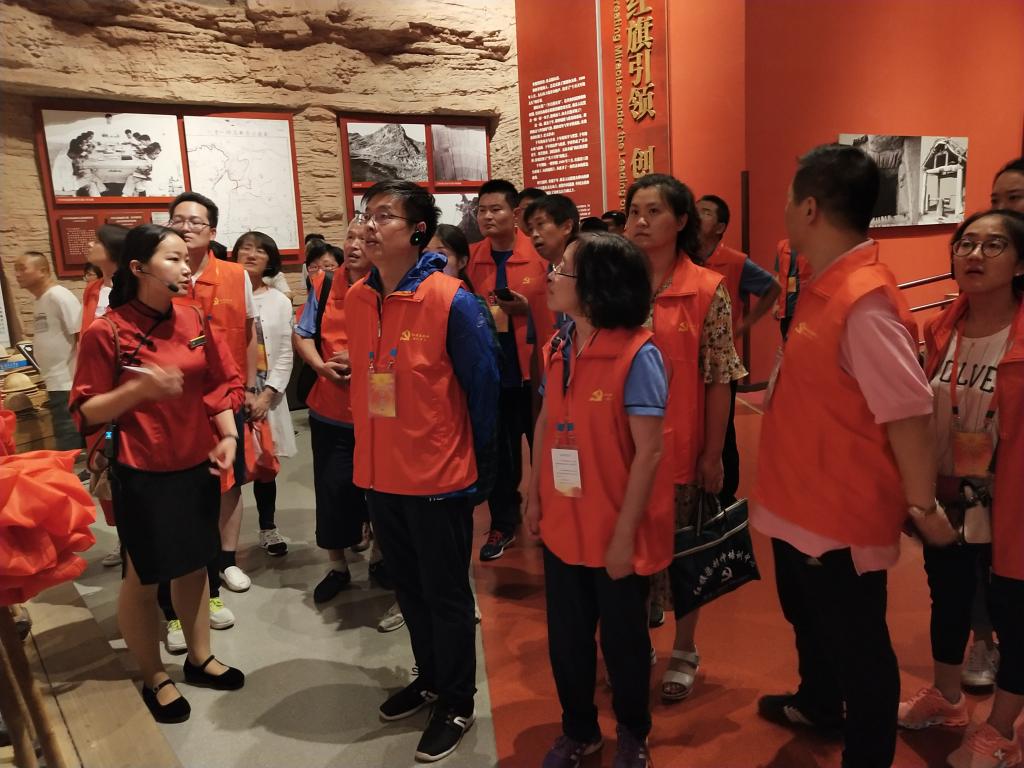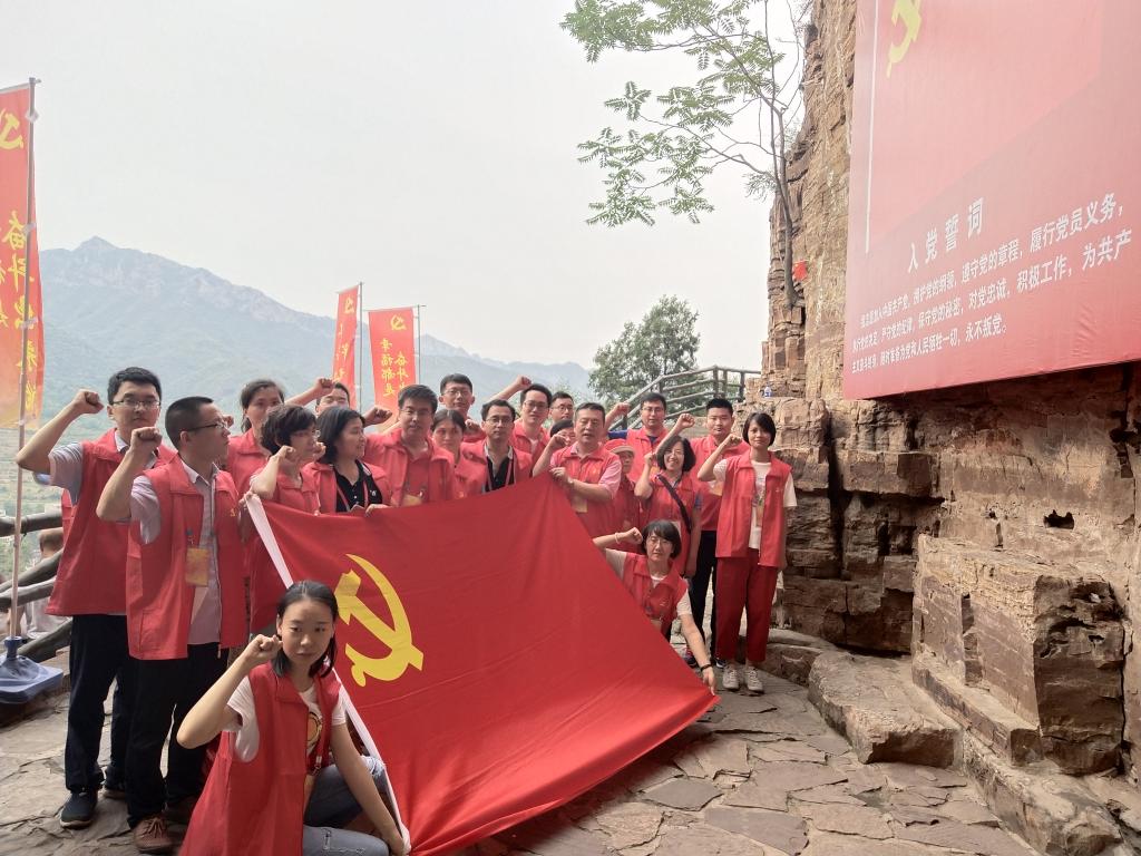 参观红旗渠纪念馆是现场教学第一站。红旗渠是上个世纪60年代林县人民在极其艰难的条件下,历时近十年从太行山腰绝壁穿石、挖渠千里的引漳入林工程,被誉为“世界第八大奇迹”。在解说员的详细讲解下,大家知晓了当年林州人民修筑红旗渠的历史背景,以及修成1500公里红旗渠的奋斗历程与英雄事迹。纪念馆内一幅幅图片、一件件实物再现了当年10万林州人民不畏艰险、顽强拼搏、撼天动地的恢弘场景。随后,大家实地参观了红旗渠总干渠分水的枢纽工程——分水闸和干渠的咽喉工程——青年洞。通过聆听讲解,大家无不为当年林县人民“敢教日月换新天”的斗志所感染。在青年洞前,大家高举右手庄严宣誓,重温入党誓词。