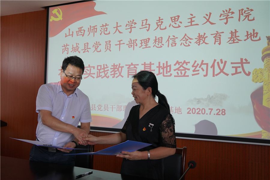 芮城县委组织部副部长焦江峰与副经理赵改萍进行签约