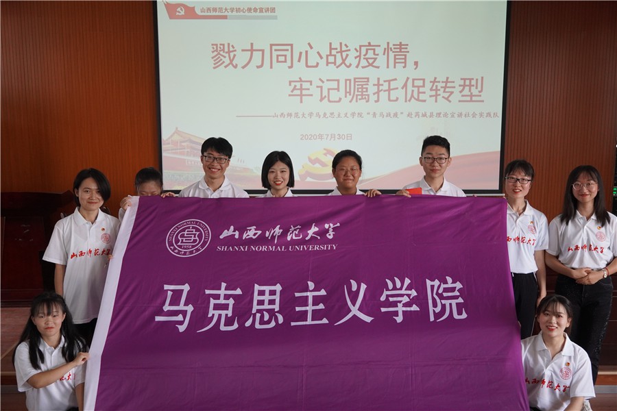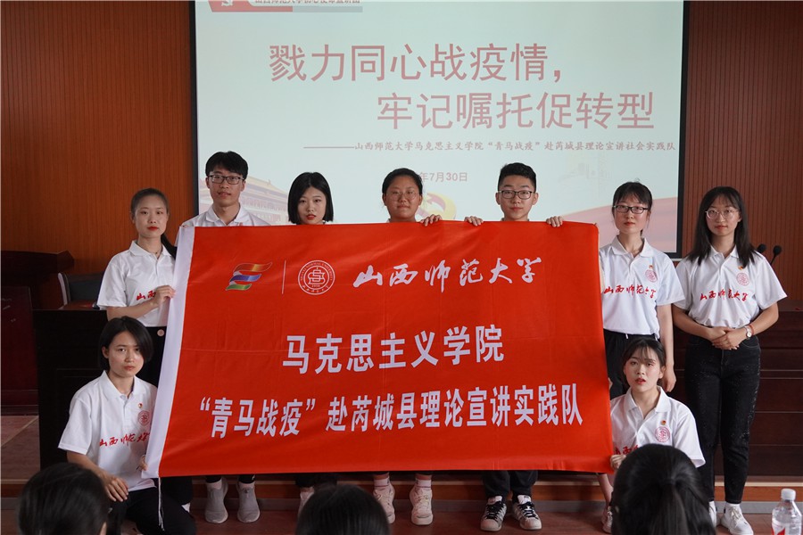 为领会习近平总书记视察山西重要讲话重要指示,展现山西各地在抗疫过程中对国家方针政策的积极响应以及由此体现的我国社会主义制度的本质特征和最大优势,7月30日,304永利集团“青马战疫”理论宣讲社会实践队成员于芮城县理想信念教育基地报告厅,为前来学习的60余名党员干部进行了以“勠力同心战疫情,牢记嘱托促转型”为主题的宣讲活动。