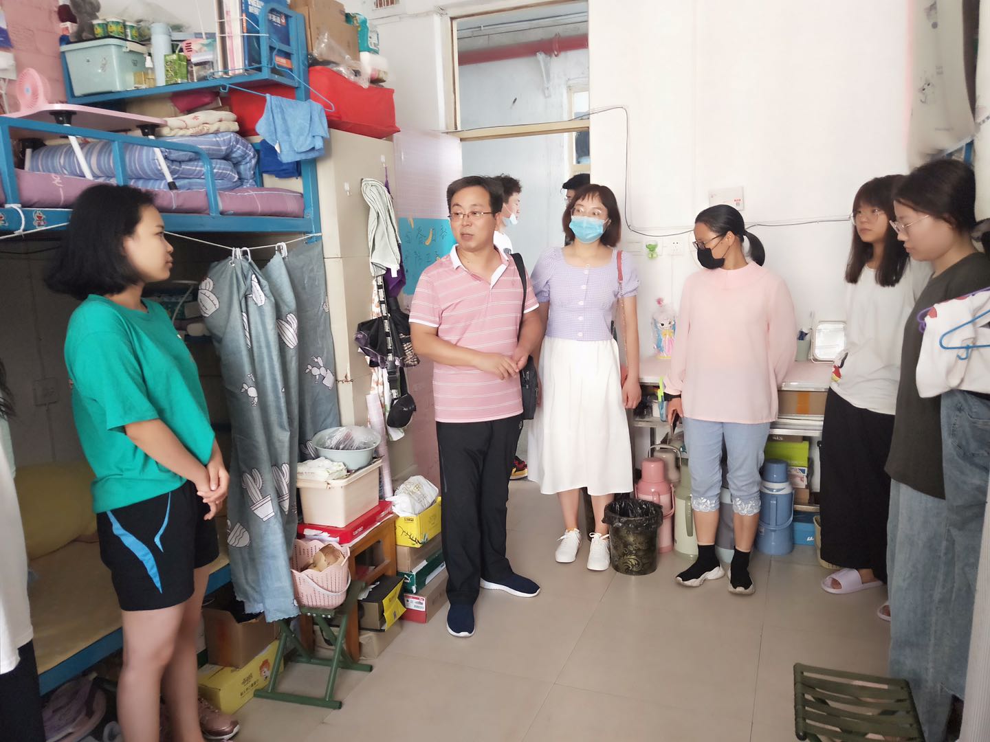探访期间,学院领导和辅导员老师与员工面对面的进行了交流,详细询问了大家在返校后学习、生活等方面情况,广泛征集了大家对员工教育管理服务工作的意见和建议,仔细排查了宿舍可能存在的消防安全隐患。本次探访活动共涉及员工宿舍64个,其中新松小区21个,华盛小区43个。