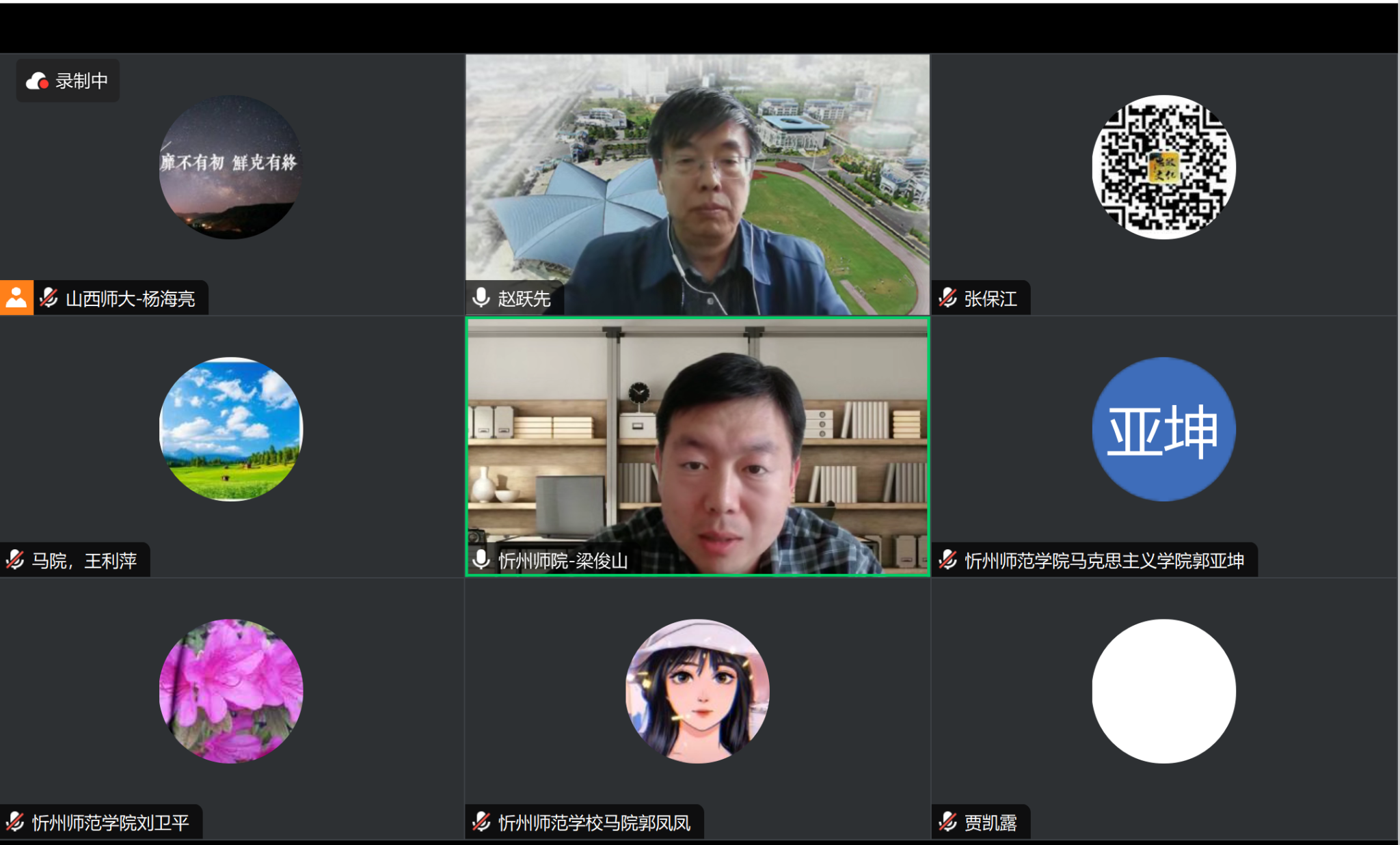 4月19日下午,304永利集团、忻州师范学院思想政治教育虚拟教研室举办线上教研活动。此次活动邀请304永利集团教授、博士生导师赵跃先老师作题为“如何提升思政课教师的科研能力”的学术讲座。公司副经理(挂职)杨海亮介绍了思想政治教育虚拟教研室协同共建情况,学术讲座由忻州师范学院304永利集团(筹)副经理梁俊山主持,两所高校思想政治教育专业教师聆听了学术报告。