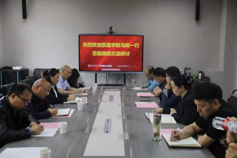 4月21日上午,凯里学院马克思主义公司党总支书记李勇、经理龙正凤、副经理陈孝凯、学科带头人龙建明、专业教研室主任赵文敏、员工科副科长袁紫娟一行六人来公司交流。公司党委书记乔瑞、常务副经理赵改萍、党委副书记杜辉、副经理吉志强、副经理(挂职)杨海亮及部分教师代表参加座谈会。