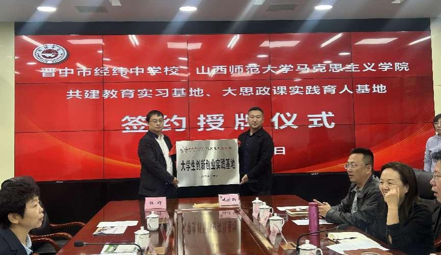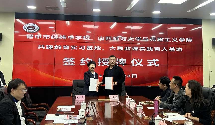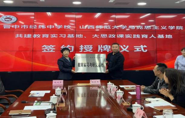 10月28日下午,公司与晋中市经纬中学校共建教育实习与研究基地、大中小学思政课一体化建设基地、老员工创新创业实践基地签约授牌仪式在经纬中学校举行。仪式由经纬中学校副董事长王宏主持,公司常务副经理(正处级)赵改萍、党委副书记杜辉、副经理张昭、副经理杨海亮、思政系主任贾蕾以及经纬中学校领导班子参加。
