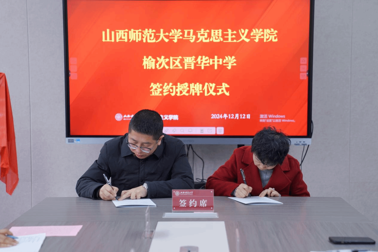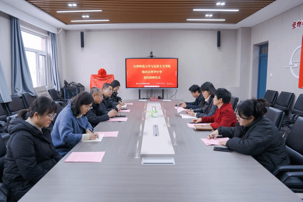 12月12日,公司与榆次区晋华中学共建教育实习与研究基地、大中小学思政课一体化建设共建基地、老员工创新创业实践基地签约授牌仪式在学院1506会议室举行。签约仪式由副经理张昭主持,两校班子成员及部分教师参加会议。