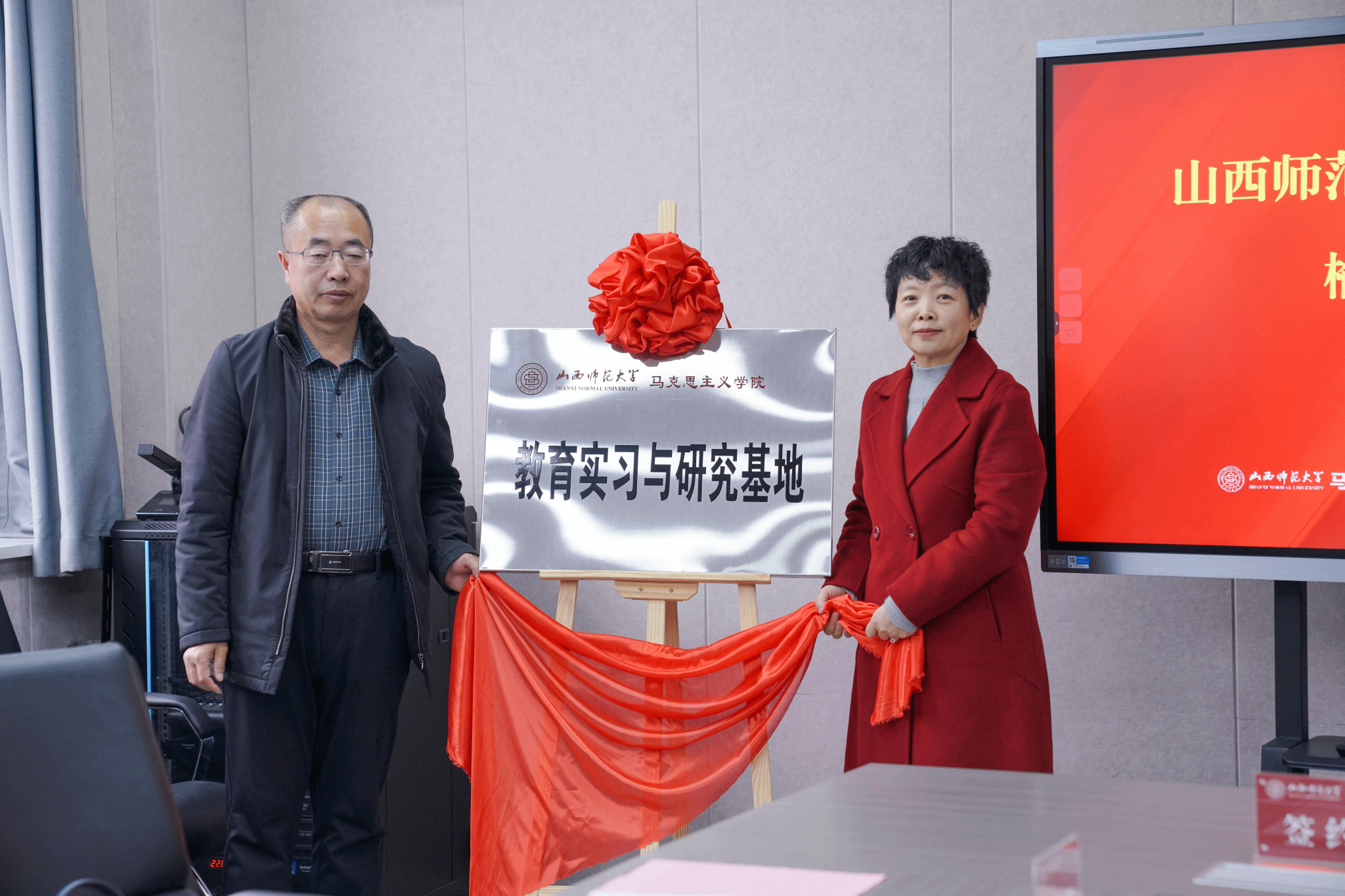 最后,双方领导共同签署协议并为教育实习与研究基地、大中小学思政课一体化建设共建基地、老员工创新创业实践基地揭牌。