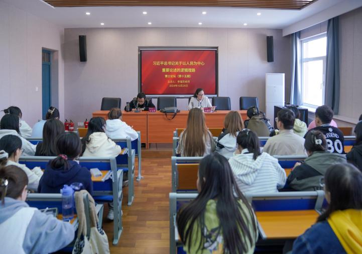 其次,李瑞芳老师作了题为《习近平总书记关于以人民为中心重要论述的逻辑理路》的报告。她从形成背景、主要内容、特征、内在逻辑理路四个方面论述了习近平总书记关于以人民为中心的重要论述。