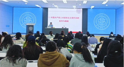 刘明明教授围绕“中国式现代化的若干议题研究”主题,从“中国共产党人对资本主义现代化的批判与超越”“中国式现代化与苏联式现代化:比较·超越·镜鉴”“从特殊到一般:中国式现代化为人类实现现代化提供的新选择”三个议题展开讲解,揭示了中国式现代化与其他现代化发展道路相比的显著特色和优越性,并由特殊上升到一般,深刻总结了中国式现代化道路对人类社会现代化发展的一般性启示。报告逻辑清晰、内容丰富、资料翔实,具有很强的针对性和指导性,加深了在场师生对中国式现代化研究前沿的了解,为我们关注和研究中国式现代化问题提供了新的思考点和切入点。