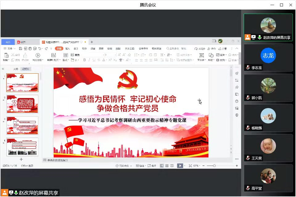 2022年2月25日晚7点半,304永利集团“守正创新”教工党支部在腾讯会议开展学习贯彻习近平总书记考察调研山西重要指示精神主题党课。支部书记赵改萍讲授党课,支部全体党员参加。