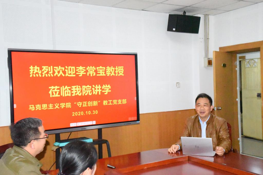 今年是中国人民抗日战争暨世界反法西斯战争胜利75周年。为铭记抗战历史、传承红色基因,继承和弘扬伟大抗战精神,2020年10月30日下午,公司“守正创新”教工党支部在科学会堂A508会议室开展纪念中国人民抗日战争暨世界反法西斯战争胜利75周年主题党日活动。本次活动特邀公司历史与旅游文化学院李常宝教授作了《黎明前的黑暗:中共太行抗日根据地之1943年》的专题报告。此次主题党日活动由支部书记赵改萍主持,支部全体党员和入党积极分子参加。