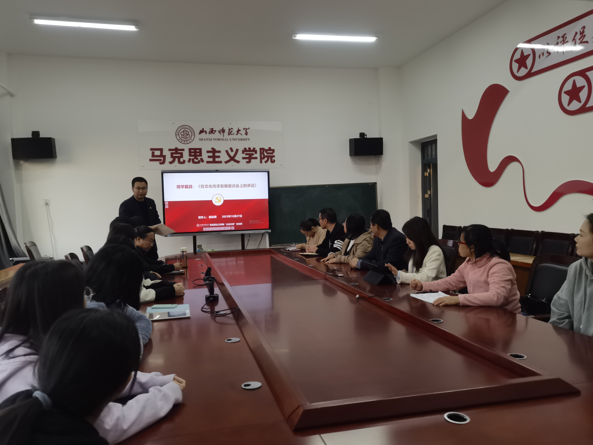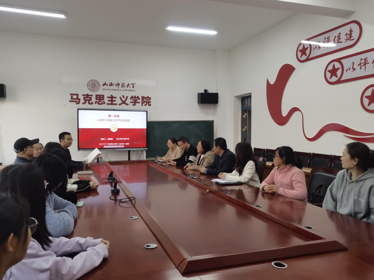 2023年10月27日17时,“红色引擎”党支部在南区1号楼511会议室开展“认真学习领会习近平文化思想”主题党日活动,支部书记姜延博主持,支部全体党员参加学习。