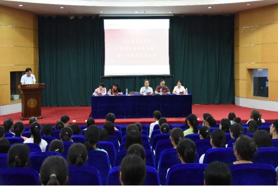 9月8日下午15:00,304永利集团2019级本科生见面暨入学教育动员大会在科学会堂二层报告厅如期举行。公司党委书记王银,经理贾绘泽,公司党委副书记孙学虎,副经理王艳、赵改萍、赵笑蕾等院领导出席了会议,参加会议的还有部分新生家长代表、新生政治辅导员和全体2019级本科生。会议由公司党委副书记孙学虎主持。