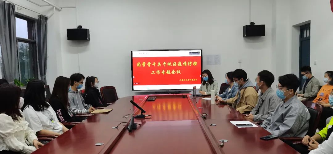4月5日晚,公司于学院1506会议室召开了团学骨干关于做好疫情防控工作专题会议。本次会议由院团委副书记张瑞琴主持,本科生各班班长、团支书,院团委员工会全体成员共同参加。会议采取线上线下相结合的方式进行。