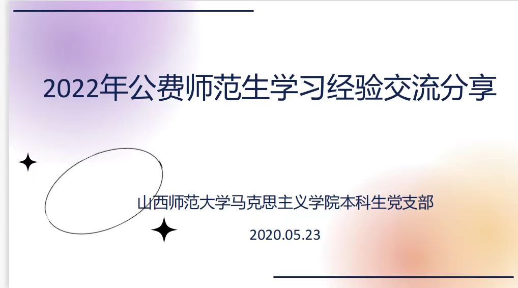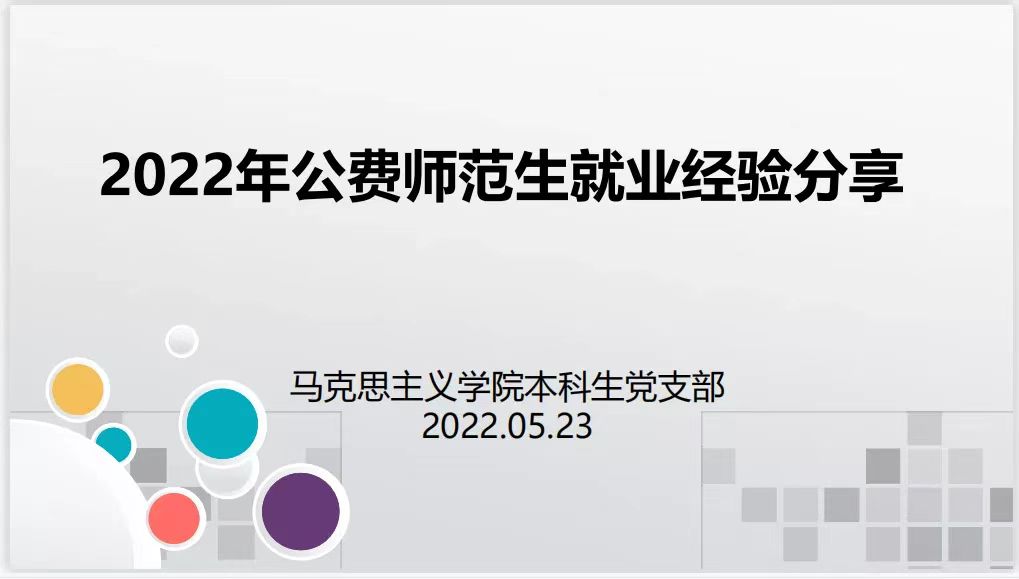 5月23日下午,公司团委和本科生党支部于南区一号楼506会议室共同举办了2022年公费师范生学习经验和就业经验交流分享会。本科生党支部书记张玉婷、组织委员李丽丽、宣传委员张瑞琴,以及本科生党支部全体党员、公费师范生分别于线上线下共同参加了会议。会议由1801班党琪同学主持。