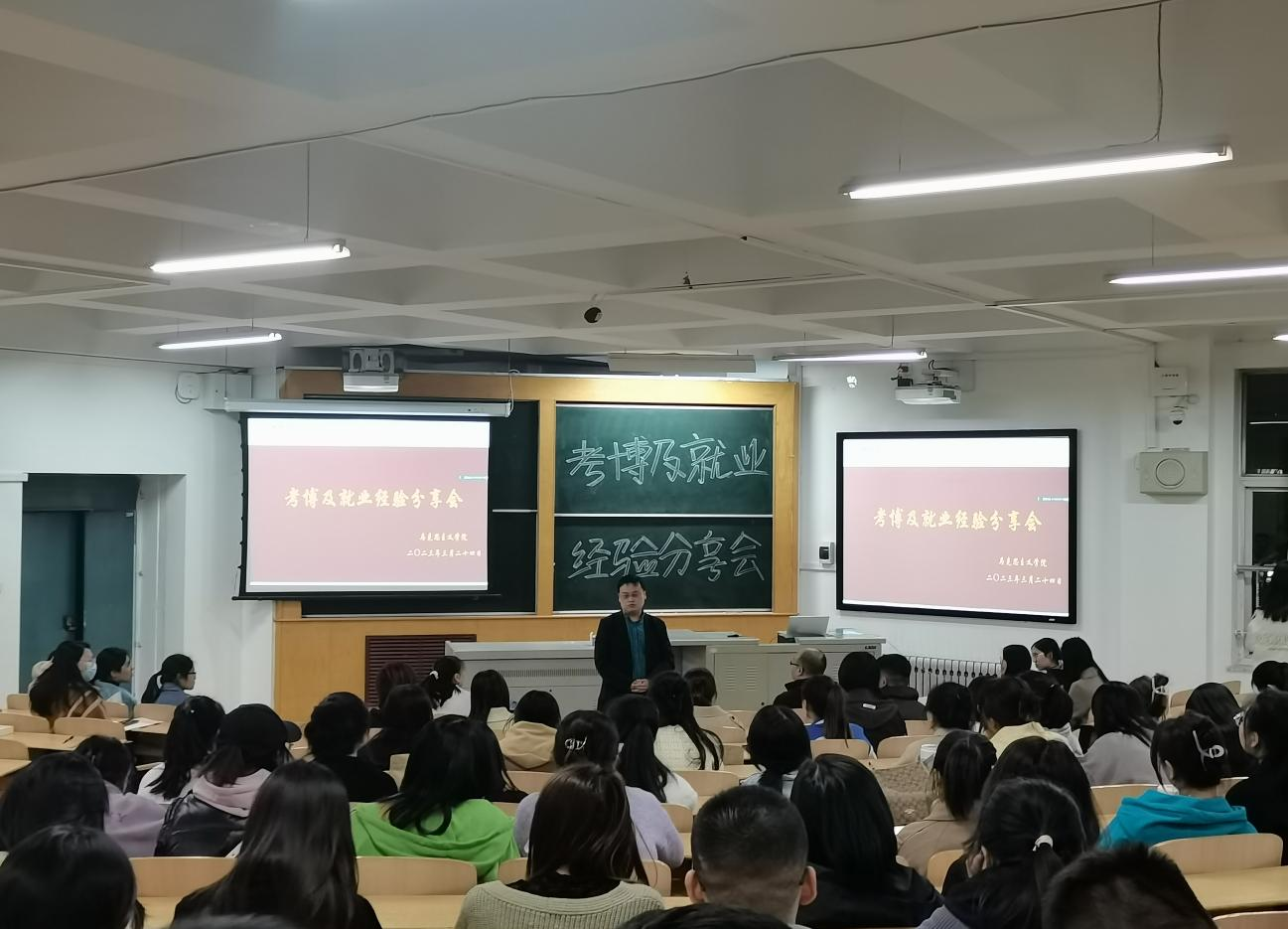 首先,葛秀琴老师对本次分享交流会作了简单介绍。她指出,学院举办此次分享会,基于同学们就业及考博需求,旨在让同学们更好地了解就业形势,规划好未来。希望同学们通过此次就业及考博经验分享会能有所收获。