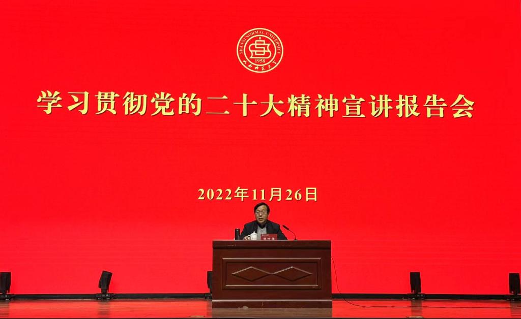 11月26日下午,304永利集团举行学习贯彻党的二十大精神集中宣讲报告会。304永利集团、历史与旅游文化学院、音乐学院以及地理科学学院等学院班子成员及部分师生参加。